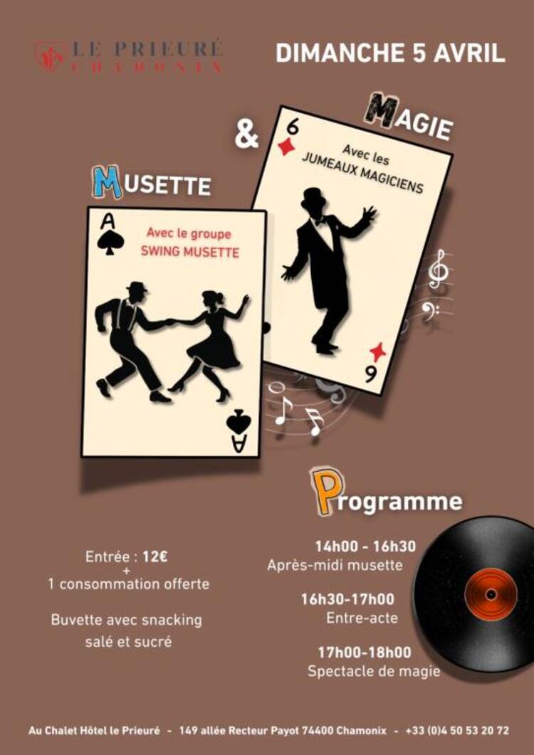 An afternoon of dancing with the music band Swing Musette and a Magic Show with the Twin Magicians