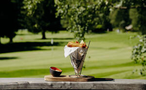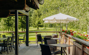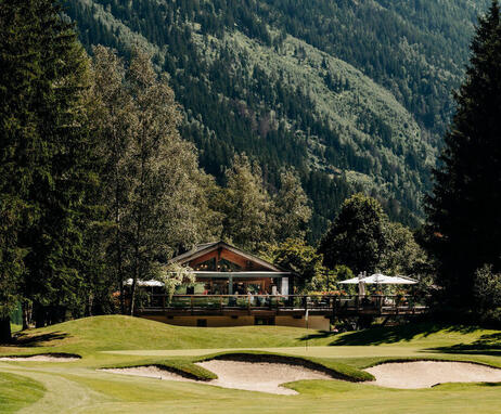 Desde nuestra terraza podrá disfrutar de una comida sencilla y sabrosa en un entorno verde en el corazón del hermoso campo de golf de Chamonix.