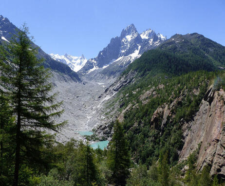 A beautiful hike up the mountain of La Pendant. Between alpine meadows and forests, you'll discover some of the ancient viewpoints of the Mer de Glace, and see how the glacier has retreated over the ages.