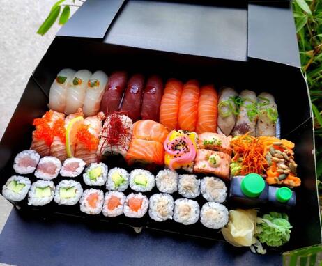 Por la noche, puede encargar nuestro menú de sushi por teléfono o en el momento, para recoger de 17.30 a 21.00 horas. Tenga en cuenta que el último pedido se tomará a las 20.30 h. Muchas gracias.